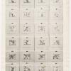 A photostat storyboard sheet from the Walt Disney Studios animated and live-action film “The Reluctant Dragon” (1941). Featuring the Reluctant Dragon and the boy, the storyboard sheet was created at the studio and used during the animation process as reference. Measuring 11"x14" overall, with each panel measuring 2”x2.5”, the sheet is in very good condition with creasing, discoloration and wear on the edges, pinholes from studio use, and graphite marks on the backside of the paper.